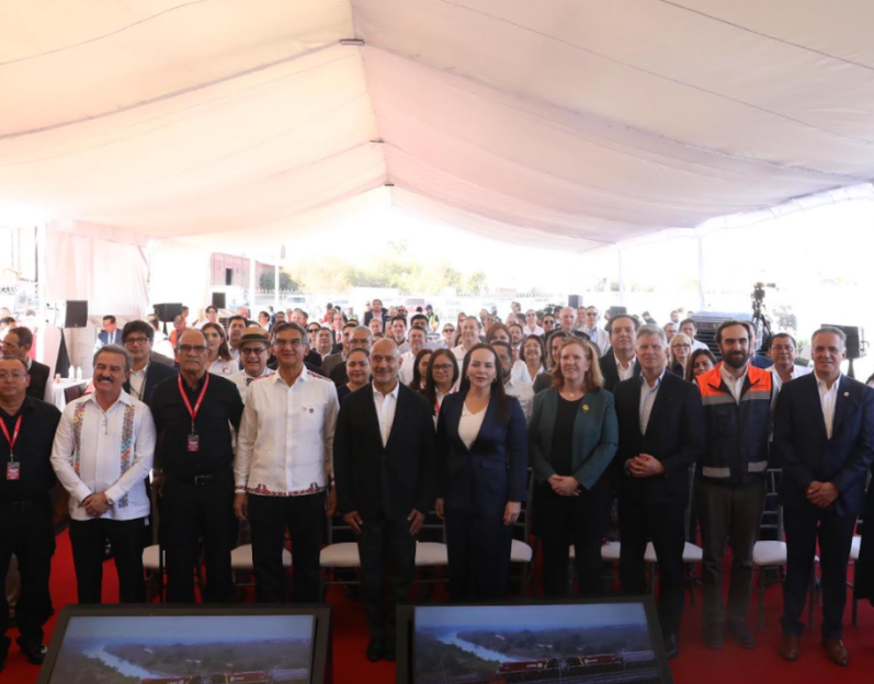 Jesús Antonio Esteva Medina, Secretario de Infraestructura, Comunicaciones y Transportes (SICT) y representante de la presidenta de México, Claudia Sheinbaum Pardo; el gobernador de Tamaulipas, Américo Villarreal Anaya; y la alcaldesa de Nuevo Laredo, Carmen Lilia Canturosas Villarreal, junto a Oscar Del Cueto, presidente y representante ejecutivo de CPKC de México encabezaron la ceremonia, destacando la importancia de esta infraestructura para fortalecer el comercio transfronterizo y la economía regional.