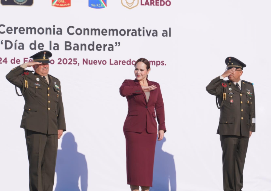 Junto a la alcaldesa, el General Brigadier D.E.M. Miguel Ángel RamírezCanchola, Comandante de la Guarnición Militar de Nuevo Laredo y elCoronel de Caballería D.E.M Ricardo Lopez Palafox, Comandante del 16Regimiento de Caballería Motorizado, marcaron el inicio de laceremonia con los honores a la bandera y el izamiento del lábaropatrio, en un acto solemne a cargo del personal militar.