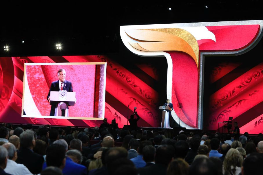 Antes, el Gobernador habló ante la sociedad de la zona sur e invitados especiales los avances logrados en infraestructura, educación, deporte, obra pública, energía, campo, empleo, turismo, salud, cultura, apoyos sociales y la buena relación con SNTE, SUTSPET e iniciativa privada