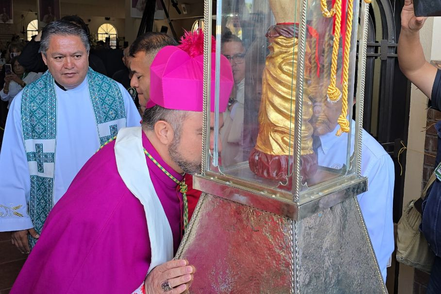 El obispo recibió sl medio día de este jueves las reliquias que vienen de Tampico, como parte del recorrido que realizan por todo el país.