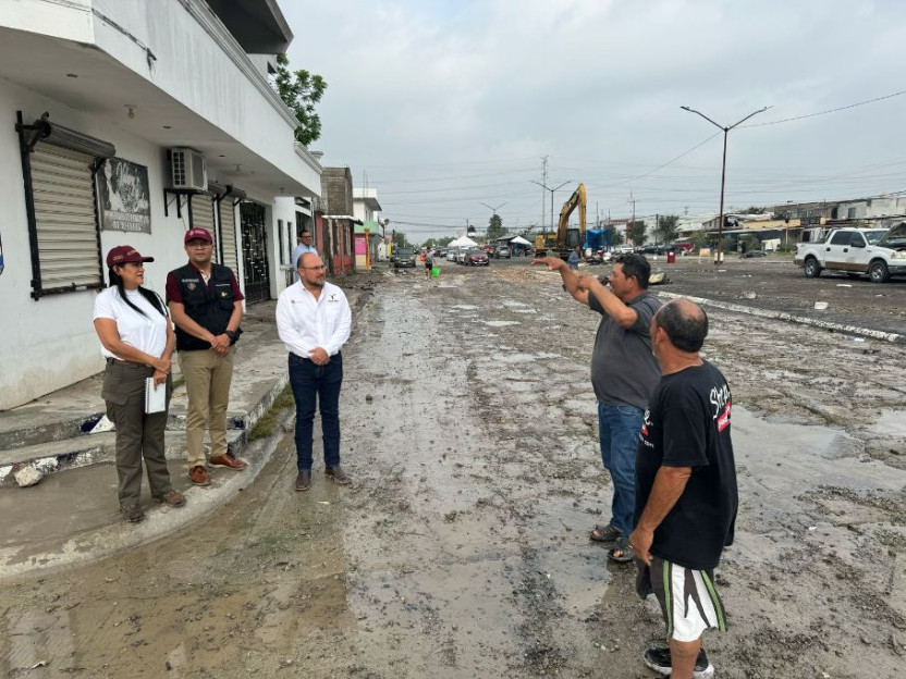 La secretaria de Bienestar del Gobierno de México, Ariadna Montiel Reyes, recorre este domingo colonias afectadas por las lluvias en esta ciudad, en donde constata los daños que sufrieron en su patrimonio las familias reynosenses.