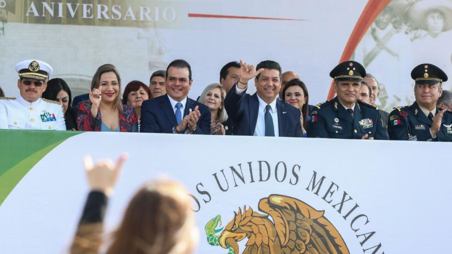 “Agradezco al alcalde Enrique Rivas su hospitalidad en un evento del 109 Aniversario de la Revolución Mexicana donde se celebra con este ya conocido desfile y donde hubo más de 72 contingentes con más de 5 mil 200 participantes. Vimos un gran entusiasmo de la población, quiero agradecer la participación del Ejército Mexicano”, destacó el gobernador Francisco García Cabeza de Vaca.