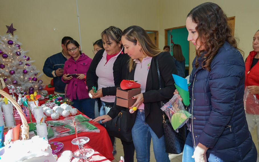 El voluntariado, encabezado por Angélica Herrera Zárate, reconoció el esfuerzo y talento de los adultos mayores que realizaron coronas y pinitos navideños, esferas decoradas a mano, borreguitos de la buena suerte, colgantes para la puerta, joyería y tortilleros.