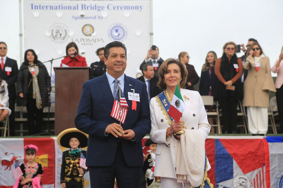 El Gobernador, Francisco García Cabeza de Vaca y Nancy Pelosi, Presidenta del Congreso de los Estados Unidos, presidieron la mañana de este sábado la ceremonia de abrazo por la hermandad entre naciones, en inmediación del Puente Internacional Juárez–Lincoln, con motivo de la Conmemoración del Natalicio de George Washington.