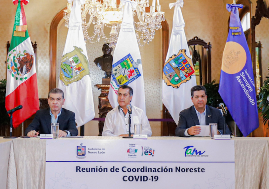 MONTERREY, NL.- Los gobernadores Francisco Javier García Cabeza de Vaca, de Tamaulipas; Jaime 'Bronco' Rodríguez, de Nuevo León y Miguel Riquelme Solis, de Coahuila sentaron las bases de una Estrategia conjunta para prevenir, contener y atender contagios por COVID-19 en alguna de estas entidades.