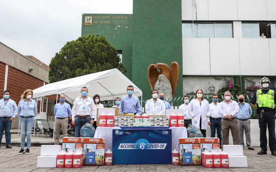 El material médico consiste en 7 cajas de guantes de latex; 100 piezas cubrebocas N95; 500 piezas de zapatos desechables antiderrapantes; 90 piezas de overoles desechables; 50 piezas googles; 6 piezas de ambu; 140 piezas de gorros desechables; 50 piezas de sistema de aspiración endotraquial cerrado #14; 50 piezas de sistema de aspiracion endotraquial cerrado # 16; 4 equipos de sanitización manuales y 20 galones de líquido bactericida para sanitizar.
