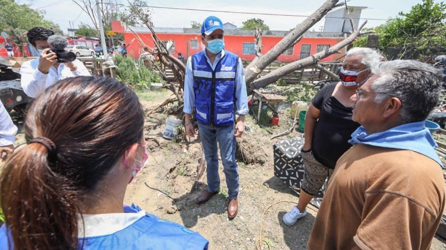 Una de las viviendas afectadas que visitó el alcalde es la ubicada en Centauro del Norte 1202, donde habita Cenobia Márquez, quien recibió apoyo de Protección Civil para retirar un árbol que cayó en el patio de su domicilio y afectó medidores de luz.