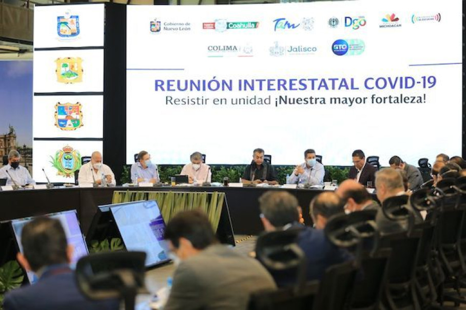 Monterrey, NL.- Al participar en una nueva edición de la Reunión Interestatal COVID 19, los gobernadores de Tamaulipas, Francisco García Cabeza de Vaca; Nuevo León, Jaime 'El Bronco' Rodríguez; Coahuila, Miguel Riquelme; Michoacán, Silvano Aureoles; Jalisco, Enrique Alfaro; Guanajuato, Diego Sinhue, Colima, Ignacio Peralta y Durango, José Rosas Aispuro lograron -éste viernes- consensos para fortalecer acciones de emergencia preventiva en beneficio de cada una de estas entidades.