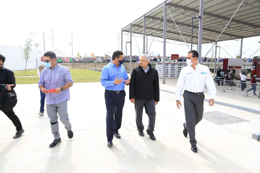 El Presidente López Obrador y el Gobernador García Cabeza de Vacainauguraron en Nuevo Laredo un nuevo Centro Deportivo y un Parque de Béisbol,como parte del Programa de Mejoramiento Urbano de la Secretaría de DesarrolloAgrario, Territorial y Urbano (SEDATU), que también realiza acciones derehabilitación de instituciones educativas e infraestructura de salud en diversosmunicipios de la entidad.