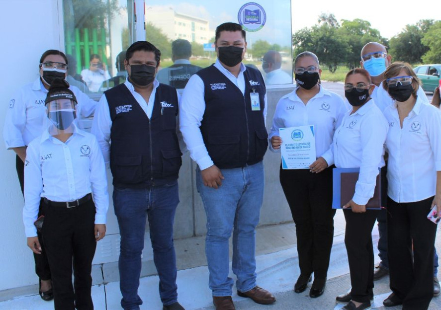 Al haber cumplido con los parámetros requeridos, la COEPRIS otorgó a la FEV-UAT la aprobación que garantiza que la escuela cuenta con todas las medidas sanitarias, identificándola con el distintivo de Escuela Segura.
