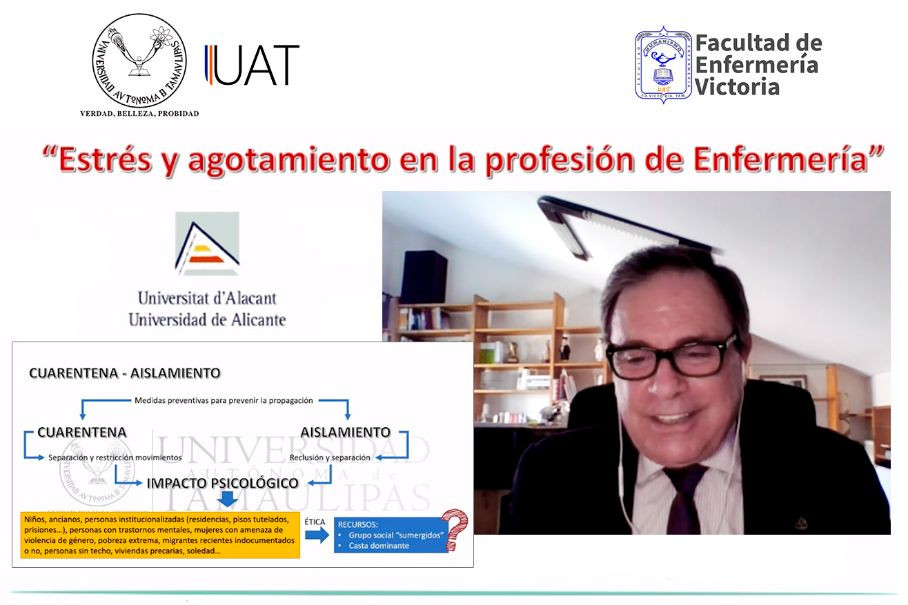 El personal de enfermería está entre los profesionistas más afectados durante la pandemia, al ser parte de la primera línea de atención a la salud, aseveró el Dr. José Ramón Martínez Riera durante una conferencia científica organizada por Facultad de Enfermería Victoria (FEV) de la Universidad Autónoma de Tamaulipas (UAT).