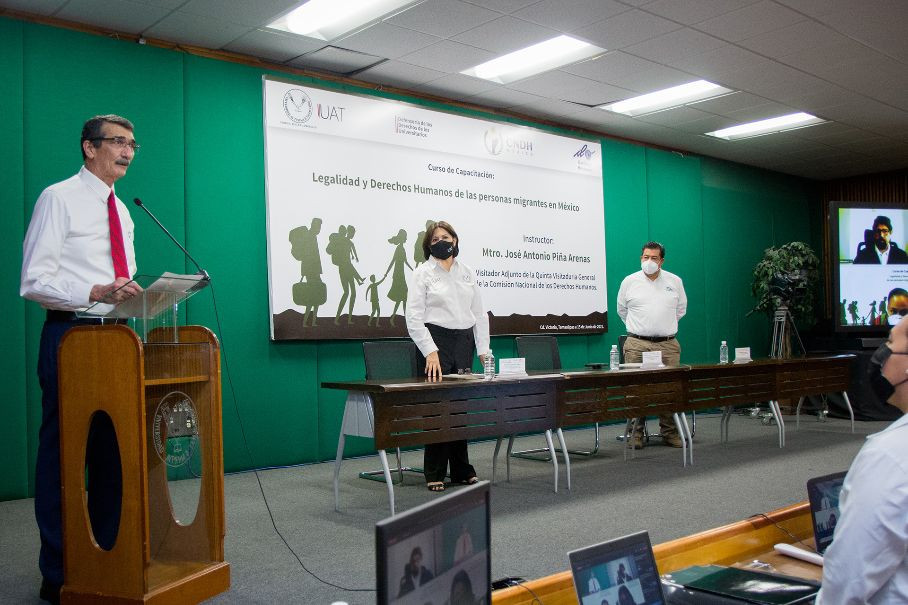 El Rector de la Universidad Autónoma de Tamaulipas (UAT), Ing. José Andrés Suárez Fernández, inauguró en esta capital las actividades del curso de capacitación en línea Legalidad y Derechos Humanos de las Personas Migrantes en México, organizado por la Defensoría de los Derechos de los Universitarios de la máxima casa de estudios en el estado.