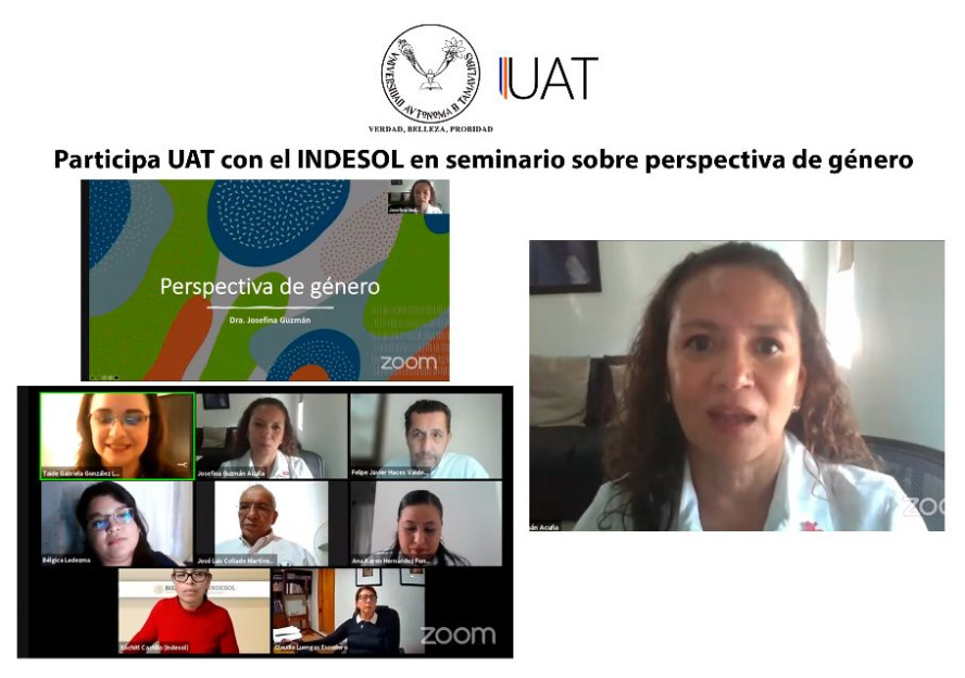 La Universidad Autónoma de Tamaulipas (UAT) realizó la conferencia "Perspectiva de género", como parte de su colaboración en el “Ciclo de seminarios sobre temas de sensibilización en la prevención de la violencia de hombres hacia las mujeres 2021”, que organiza el Instituto Nacional de Desarrollo Social (INDESOL).