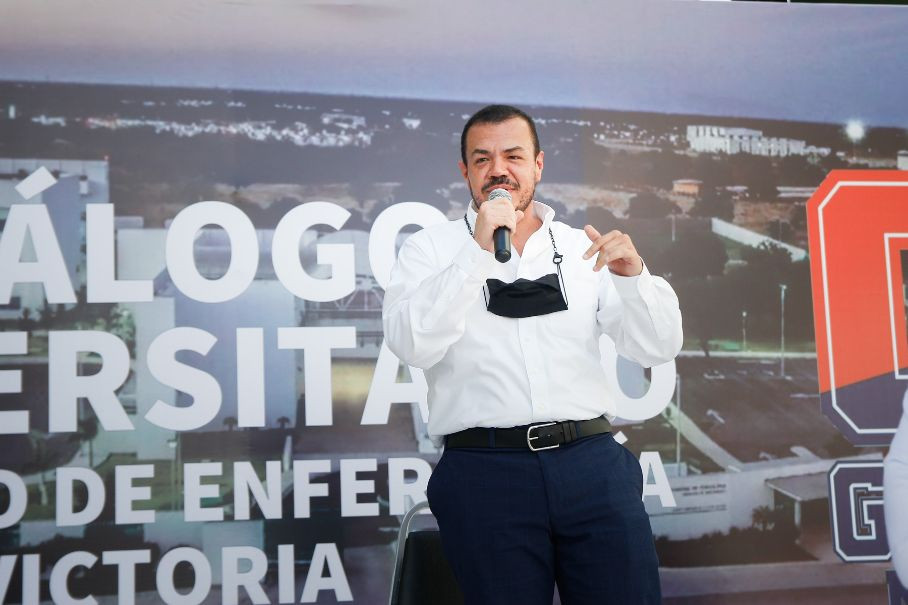 “En nuestra Facultad estamos muy entusiasmados de trabajar con usted, sabedores del conocimiento que tiene de nuestra Universidad, porque conoce sus avances, pero también sus retos, y en ello, hacemos un total compromiso para trabajar con usted”, expresó la directora de la Facultad de Enfermería-Victoria, Dra. Roxana de los Reyes Nieto, en su mensaje de bienvenida al contador Guillermo Mendoza.
