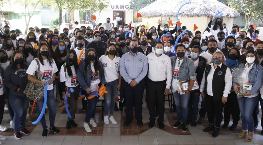 En el ágora de la UAMCEH fue recibido por alumnos de todas las carreras, donde atendió, entre otros temas, el regreso a clases presenciales, la continuidad de las becas COVID, proyectos de impulso al deporte de alto rendimiento y movilidad académica.