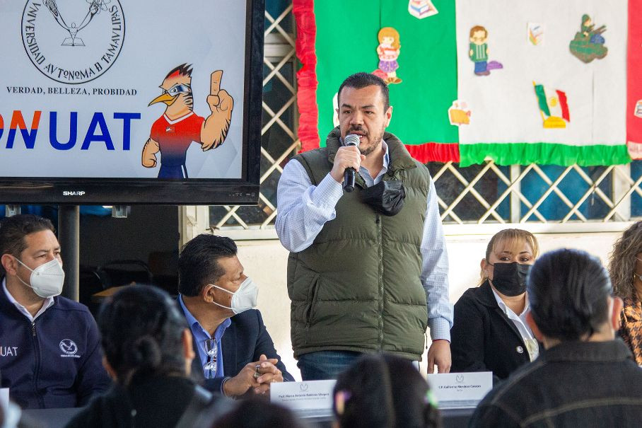 Con la asistencia de padres de familia y alumnos de las escuelas primarias, el C. P. Guillermo Mendoza agradeció a las autoridades del plantel por permitirle a la UAT brindar este esfuerzo, que reactiva también la presencia de los universitarios en la comunidad, luego de haber estado suspendida esta labor por casi dos años debido a la contingencia sanitaria.
