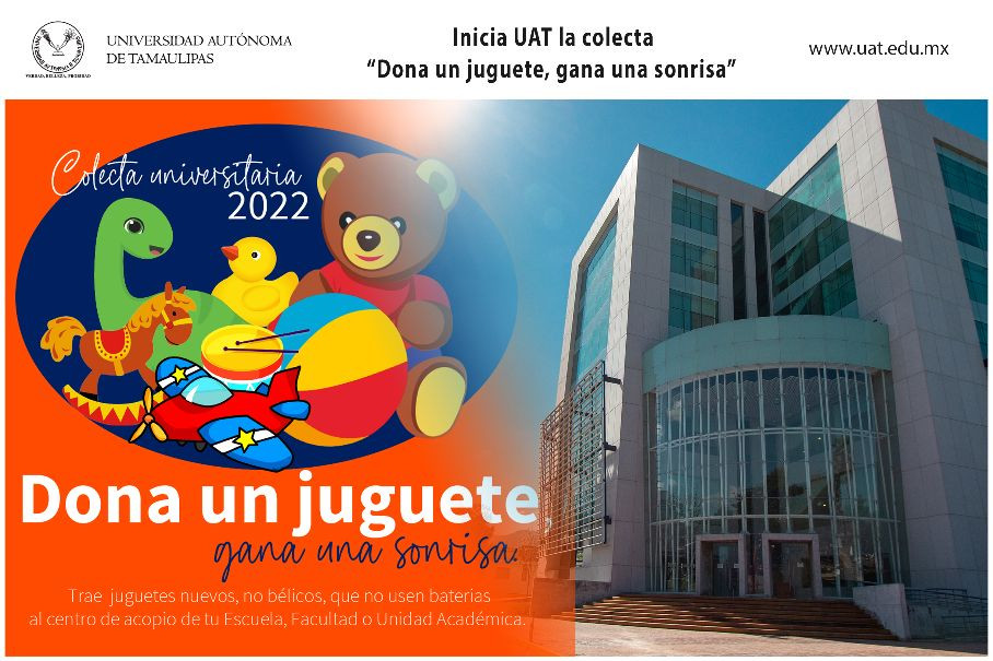 Se invita a toda la comunidad universitaria y a la sociedad en general para que, siguiendo los protocolos de salud correspondientes, participen con la donación de un juguete —de preferencia no bélico y que no use pilas— acudiendo a los centros de acopio que estarán ubicados en cada una de las facultades, unidades académicas y escuelas de la UAT en las zonas norte, centro y sur del estado.