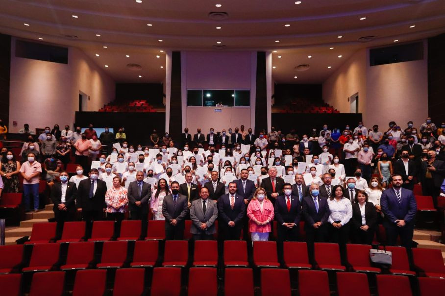 Mediante la ceremonia realizada en el Aula Magna “Herman Harris Fleishman” del Centro Universitario Sur, el Rector de la UAT hizo entrega de reconocimientos por su alto desempeño en cada una de las áreas del Examen General para el Egreso de la Licenciatura (EGEL) a 80 estudiantes universitarios egresados.