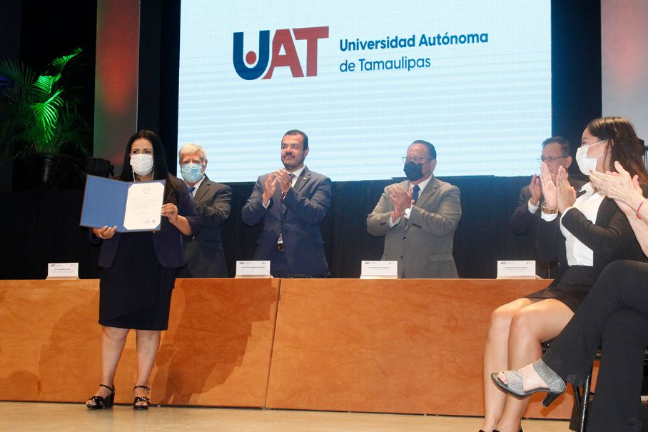 El C. P. Guillermo Mendoza Cavazos, Rector de la Universidad Autónoma de Tamaulipas (UAT), encabezó la ceremonia de toma de protesta de la Mtra. Elda Ruth de los Reyes Villarreal como Directora de la Facultad de Derecho y Ciencias Sociales Tampico (FADYCS) para el periodo 2022-2026.