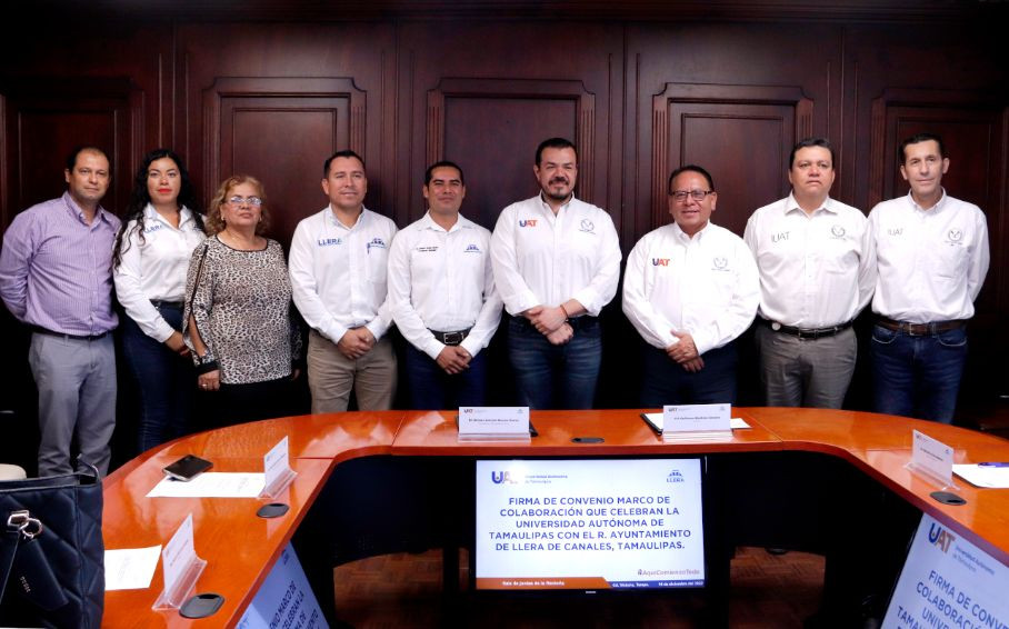 La Universidad Autónoma de Tamaulipas (UAT) firmó un convenio de colaboración con el Ayuntamiento de Llera de Canales, mediante el cual investigadores de esta casa de estudios apoyarán a los productores de ese municipio en la elaboración de cadenas productivas, entre otras acciones.