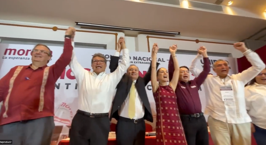 Luego de varias semanas de hostilidad interna por las señales enviadas por el Canciller Ebrard a partir del anuncio de su renuncia y de su crítica a la 'cargada' morenista en favor de la Jefa de Gobierno de la CDMX, los prospectos morenistas accedieron a tomarse la fotografía juntos con las manos alzadas en señal de triunfo y resguardados por un gran letrero que decía 'Vamos a Ganar el 2024'. Al término de la Convención, el dirigente nacional Mario Delgado mostró el documento firmado por todos los aspirantes a la candidatura. En la Convención se estableció que serán, finalmente, seis los personajes en la Encuesta y por ello, trascendió que por el PVEM sería registrado Manuel Velasco y por el PT Gerardo Fernandez Noroña. Verde y Partido del Trabajo son los Aliados tradicionales de MORENA.