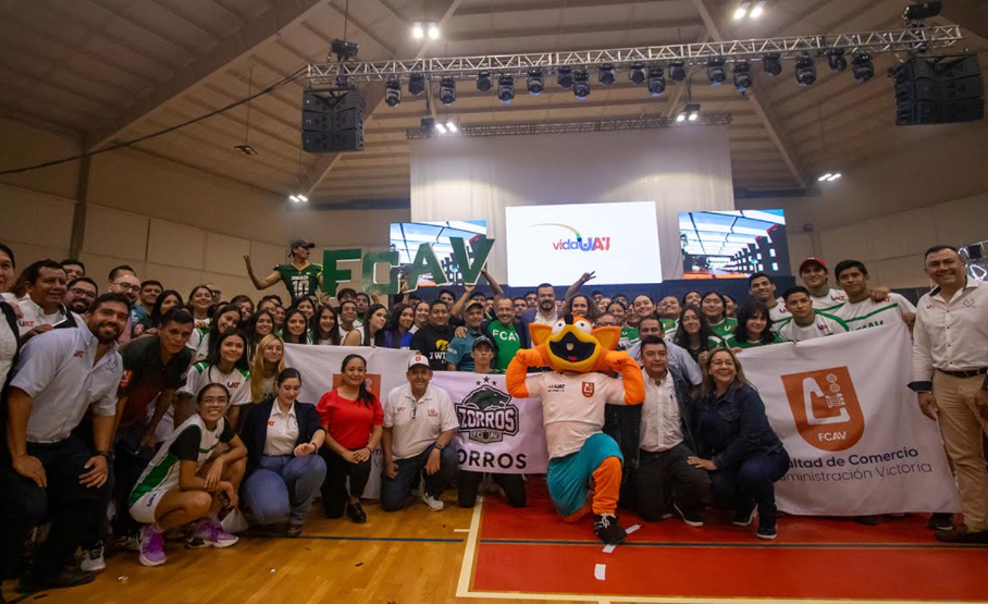 En medio de una gran fiesta deportiva universitaria, el C.P. Guillermo Mendoza Cavazos, rector de la Universidad Autónoma de Tamaulipas, puso en marcha el torneo “Vida UAT Interfacultades 2023” ante cientos de estudiantes en el Gimnasio Multidisciplinario del campus Victoria.
