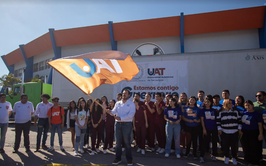 En un emotivo acto realizado frente al Gimnasio Multidisciplinario del Campus Victoria, el Rector dio el banderazo de salida al camión que transporta el donativo, expresando su agradecimiento a estudiantes, docentes y personal administrativo de las diversas escuelas, facultades, unidades académicas y dependencias de la UAT de todo el estado que generosamente participaron en esta noble causa.