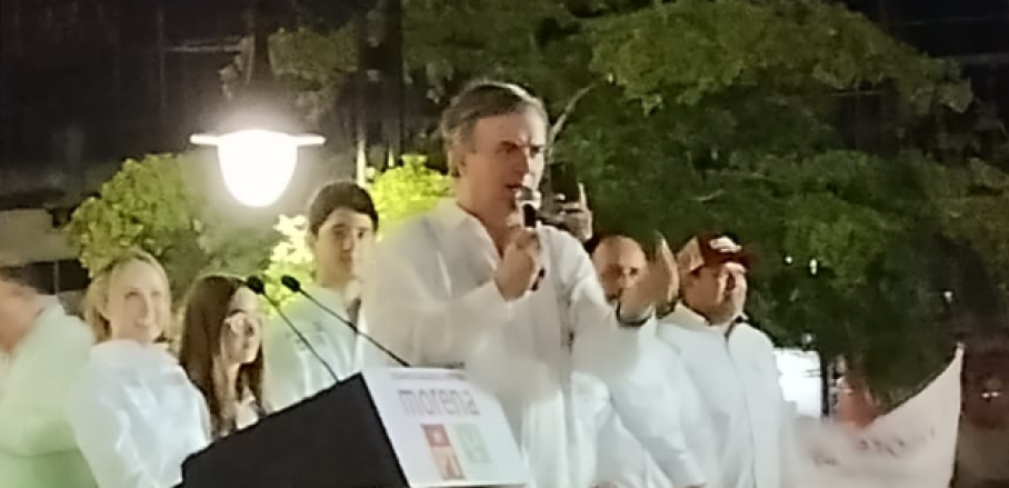 Ebrard compartido el kiosco de la plaza Isauro Alfaro Otero, con el candidato a la Presidencia Municipal de ese Municipio, Erasmo González Robledo, así como con otros candidatos a las diputaciones locales.