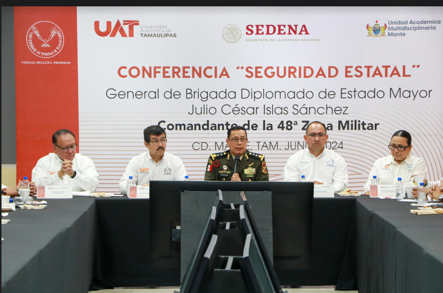 La Universidad Autónoma de Tamaulipas (UAT) organizó una conferencia sobre las funciones y el desempeño de la Secretaría de la Defensa Nacional (SEDENA), en el marco de la Reunión de Seguridad que se realizó en la Unidad Académica Multidisciplinaria Mante.