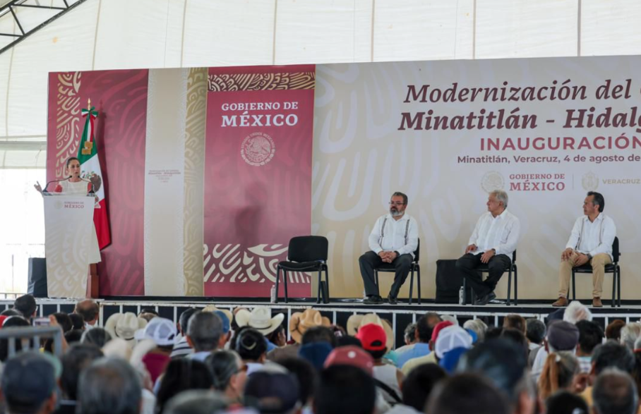 Minatitlán, Veracruz.- Continuar en equipo con la Cuarta Transformación por el bien de México y Veracruz, fue el compromiso que realizó la virtual Presidenta electa de la República, Claudia Sheinbaum Pardo, durante la inauguración del camino Minatitlán-Hidalgotitlán, encabezada por el Presidente Andrés Manuel López Obrador.