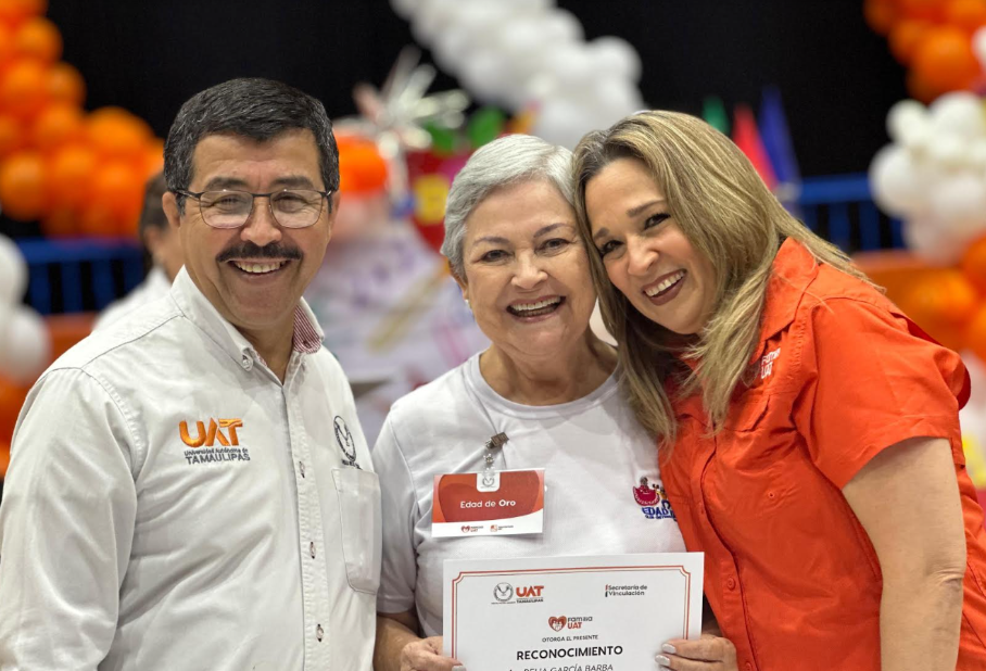 El evento reunió la entusiasta colaboración de integrantes del Club de la Edad de Oro del Gimnasio Multidisciplinario de Tampico, que participaron en esta actividad junto al rector, MVZ Dámaso Anaya Alvarado, y su esposa, Lic. Isolda Rendón de Anaya, presidenta de Familia UAT.