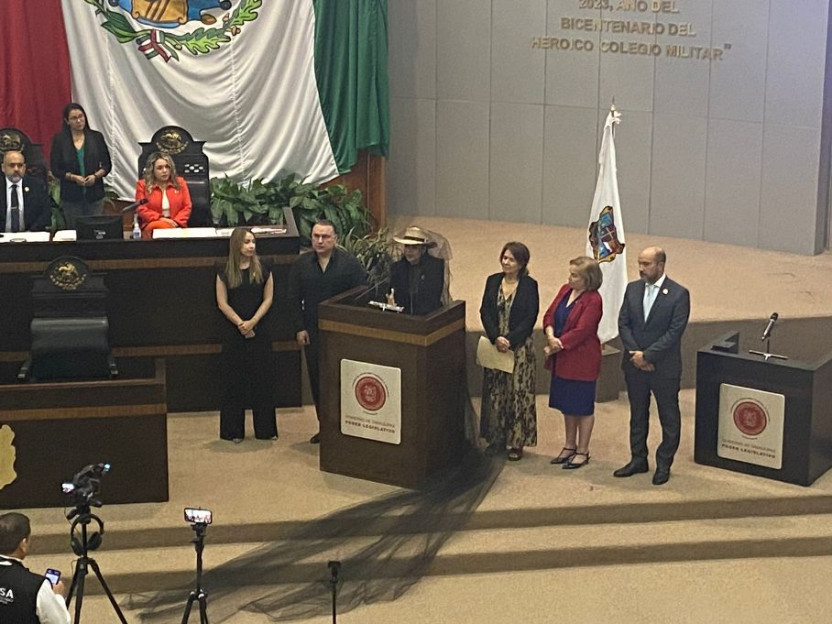 Antes, sorprendió la llegada de la Diputada Marina Ramírez a tribuna. Impactó a muchos, verla subir a tribuna con un caminar lento, vestida de negro.