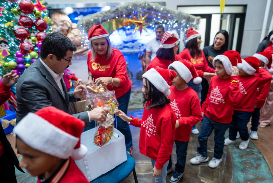 El evento contó con la participación de niñas y niños del Centro Especializado de Idiomas para la Niñez y Adolescencia (CEINA), quienes interpretaron con entusiasmo villancicos en idioma inglés, demostrando su formación bilingüe y ganándose los aplausos de padres, madres, familiares, comunidad universitaria y autoridades presentes de Familia UAT y las estancias infantiles como el CENDI UAT, CENDI IMSS y el Círculo de Desarrollo Infantil.