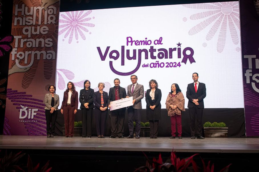 En el marco del Día Internacional de los Voluntarios, el gobernador Américo Villarreal Anaya y la presidenta del Sistema DIF Tamaulipas, la doctora María de Villarreal, hicieron entrega del Premio al Voluntario del Año 2024 en las categorías individual y grupal, en un evento realizado en el Centro Cultural Tamaulipas.