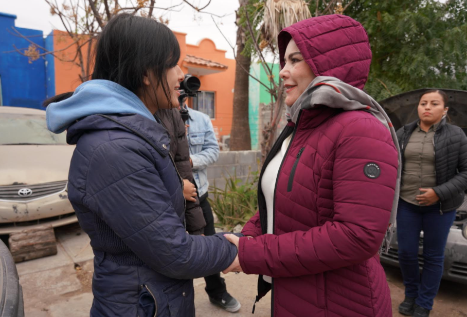 La alcaldesa de Nuevo Laredo, Carmen Lilia Canturosas Villarreal, realizó la entrega de cobertores y calentadores a ciudadanos de la localidad, como parte de una iniciativa para apoyar a las familias durante la temporada invernal en las colonias El Campanario y Lomas del Río.
