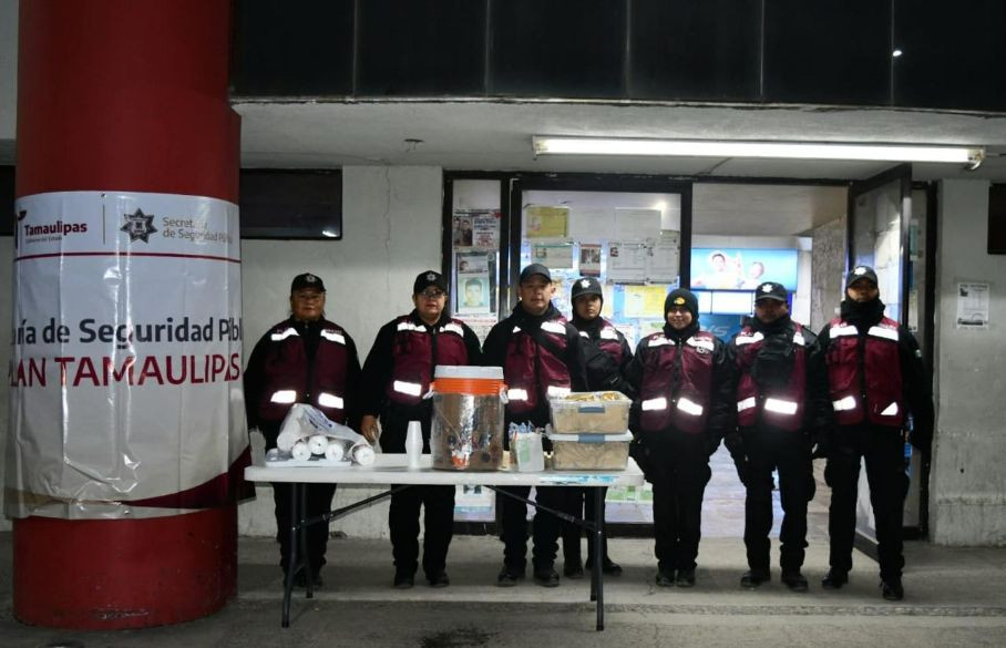 Como parte de las acciones del Plan Tamaulipas, personal de la Guardia Estatal de Género entregó alimentos y bebidas calientes a viajeros en la Central de Autobuses de Ciudad Victoria.
