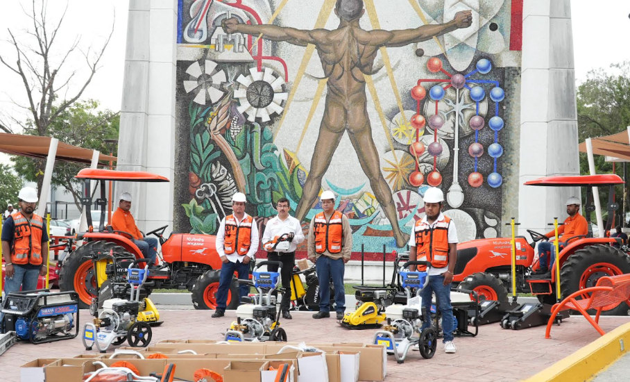 En la ceremonia realizada en el Centro Universitario Victoria, se dotó de nuevo equipo y herramientas consistentes en hidrolavadoras, escaleras, motosierras, compactadoras, cortadoras de piso, tractores, generadores eléctricos y gatos hidráulicos, entre otras.