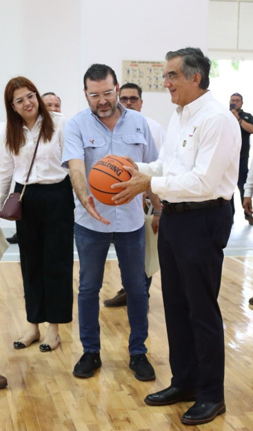Villarreal Anaya también constató la rehabilitación del gimnasio Manuel Raga Navarro, donde se llevan a cabo acciones diversas como la colocación de duela de maple en cancha de basquetbol profesional, rehabilitación de puertas metálicas y de aluminio, cambio de luminarias, instalación de un sistema de ventilación y extracción de aire, así como aplicación de sistema aislante térmico en la cubierta de lámina en el exterior. Estos trabajos suman un monto de 6 millones 62 mil 764 pesos y tienen un 93 por ciento de avance.