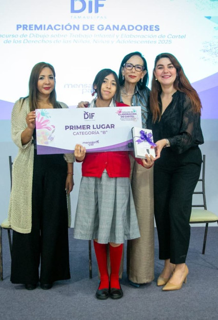 En el concurso de elaboración de carteles sobre los derechos de las niñas, niños y adolescentes se premió, en la categoría “A” (alumnos de educación primaria), a Jaziel López Bernal, de Gustavo Díaz Ordaz, con el primer lugar; Giselle Luz Reyes, de Nuevo Laredo, con el segundo lugar; y María Fernanda Narváez Chávez, de Aldama, con el tercer lugar.