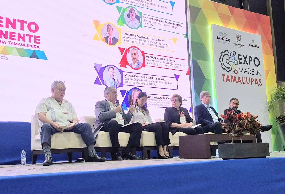 Directivos y académicos de diversos Organismos Públicos Descentralizados (OPD) de la Secretaría de Educación de Tamaulipas (SET) participaron en el panel Talento Pertinente para la Industria Tamaulipeca, realizado en Expo Tampico durante la Expo Made in Tamaulipas.
