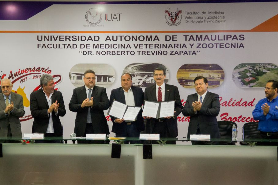 En el marco del 62 Aniversario de la Facultad de Medicina Veterinaria y Zootecnia (FMVZ) “Dr. Norberto Treviño Zapata”, el Rector de la Universidad Autónoma de Tamaulipas (UAT) José Andrés Suárez Fernández, inauguró el Congreso Nacional Veterinario y presidió la firma de un convenio con la Asociación Nacional de Criadores de Ganado Beefmaster (AMCGB).