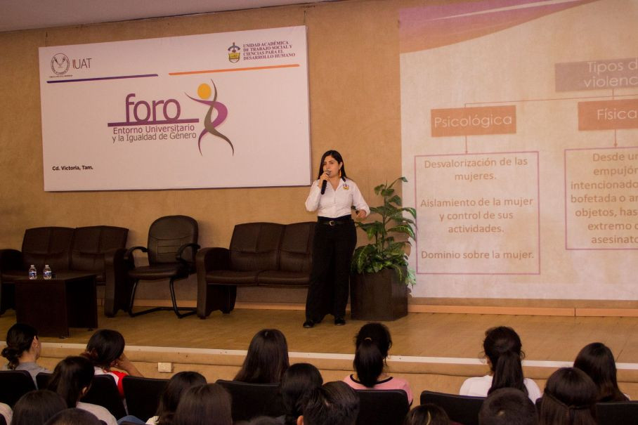 El evento desarrollado en el auditorio del plantel en el Centro Universitario Victoria, se llevó a cabo en el marco de las políticas de equidad de género, que la UAT realiza de manera permanente a través de acciones de concientización, dirigidas a la comunidad universitaria y a la comunidad en general.