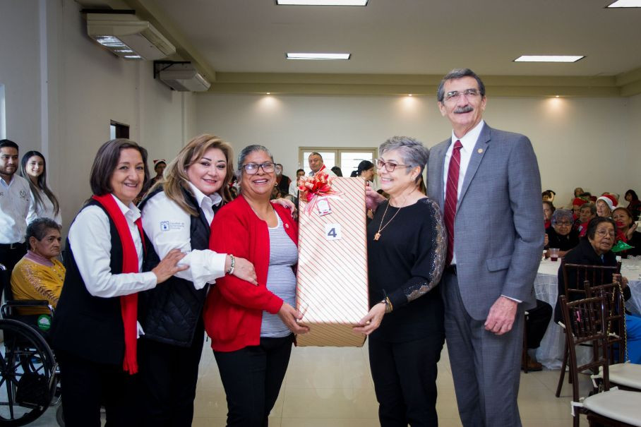 Como parte del festejo, el Rector Suarez Fernández hizo entrega de un reconocimiento especial a los abuelitos que lograron concluir sus estudios de primaria y secundaria, apoyados en los programas de educación para los adultos. Posteriormente entregó regalos a los ganadores del sorteo navideño.