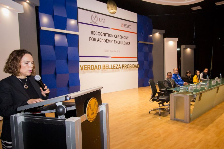 Con la representación del Rector José Andrés Suárez Fernández, la Directora de Profesión Académica de la Secretaría Académica de la UAT, Mónica Lorena Sánchez Limón, dirigió un mensaje a graduados y premiados destacando que con su labor, el CEINA contribuye a la internacionalización y la interculturalidad, además felicitó a los directivos, instructores, padres de familia y alumnos por los logros.