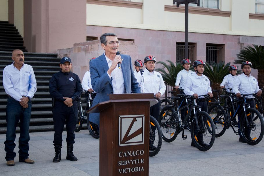 En el marco del compromiso social con la comunidad, la Universidad Autónoma de Tamaulipas (UAT) se sumó a las actividades promovidas por la Cámara Nacional de Comercio (CANACO) en Victoria y la Mesa de Seguridad y Justicia de esta capital, para la adquisición y donación de 14 bicicletas que servirán a la Policía Estatal en su programa de vigilancia y proximidad en Ciudad Victoria.