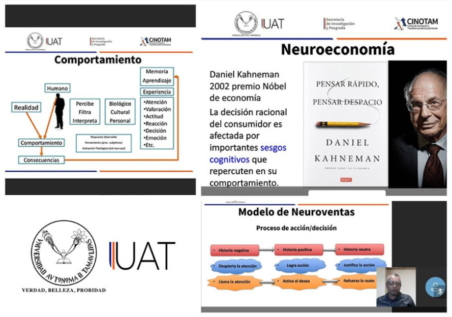 En el evento organizado por la Secretaria de Investigación y Posgrado de la UAT, su representación en el Campus Tampico y el Centro de Innovación y Transferencia del Conocimiento (CINOTAM), el Mtro. Germán Zúñiga abordó también lo relacionado al Neuromarketing.