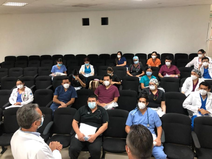 En esta ocasión correspondió recibir el equipamiento a los médicos internos en elAuditorio del Hospital General de Zona # 13 del Instituto Mexicano del Seguro Social(IMSS) en Matamoros.