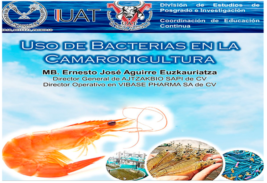La Facultad de Medicina Veterinaria y Zootecnia (FMVZ) de la UniversidadAutónoma de Tamaulipas (UAT), realizó la conferencia virtual "Uso deBacterias en la Camaronicultura", impartida por el experto del InstitutoTecnológico de Estudios Superiores de Monterrey (ITESM), Ernesto JoséAguirre Euzkauriatza.