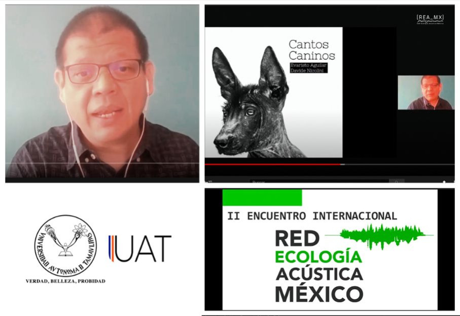 El investigador de la Facultad de Música y Artes (FMA) de la UniversidadAutónoma de Tamaulipas (UAT), Dr. Evaristo Aguilar López, expuso la producción deimágenes y sonidos denominada “Cantos Caninos”, al participar en el Segundo EncuentroInternacional de la Red de Ecología Acústica México.