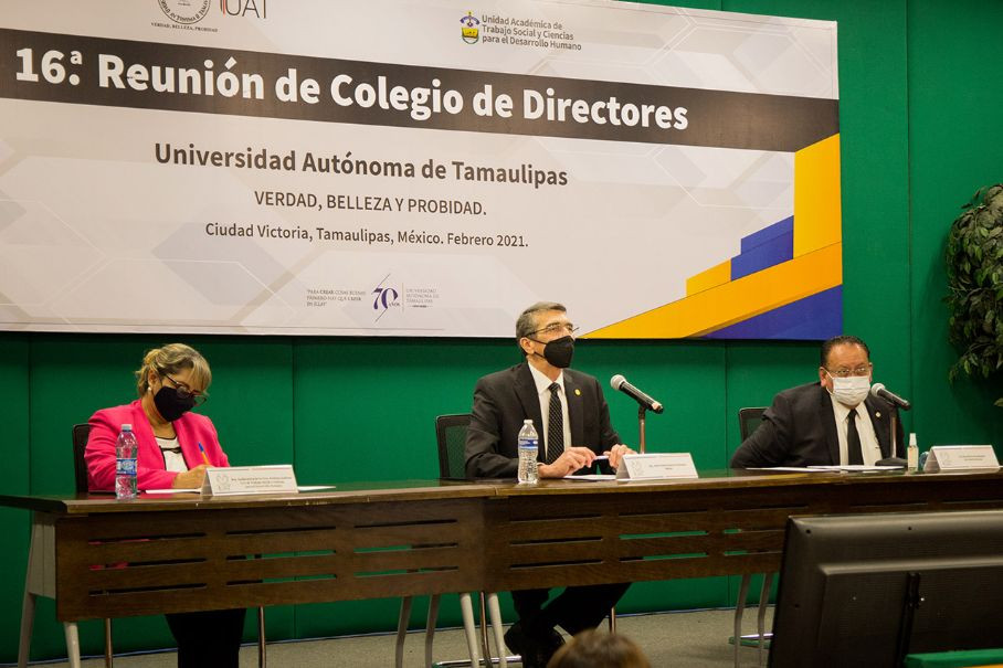 Posterior a la ceremonia, el Ing. José Andrés Suárez Fernández encabezó en el auditorio del Centro de Excelencia, la 16ª. Reunión del Colegio de Directores, en donde se expuso la agenda de actividades institucionales para el primer semestre del 2021; se presentaron los avances de la reforma legislativa; así como temas de carácter financiero del proyecto de presupuesto 2021, entre otros asuntos prioritarios para la administración rectoral y las dependencias académicas de la máxima casa de estudios de Tamaulipas.